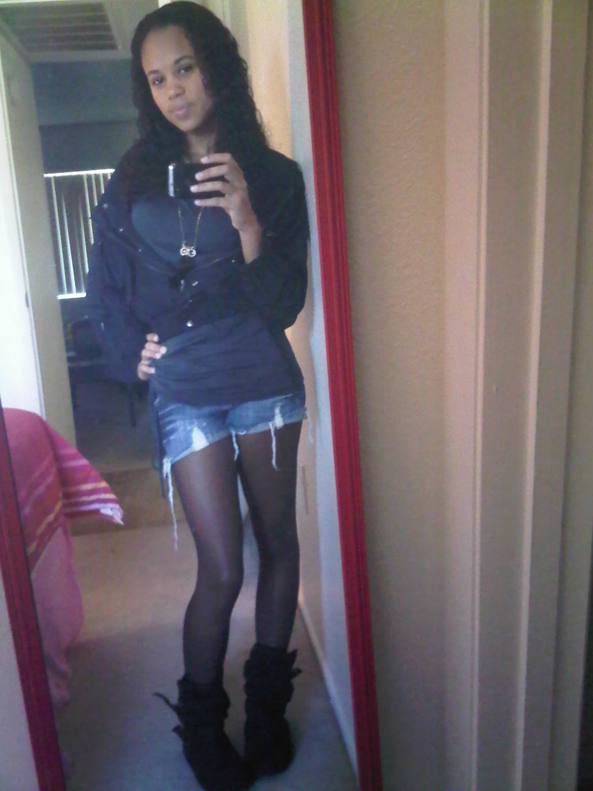 Now on to the outfit. Nothing special just an average school day, it’s getting warmer here in sunny Florida but still cool so I decided to pair my outfit with stockings and boots instead of a summery bare legs and flats or sandals. Throw on my cropped Charlotte Russe jacket and I was ready to go. 🙂