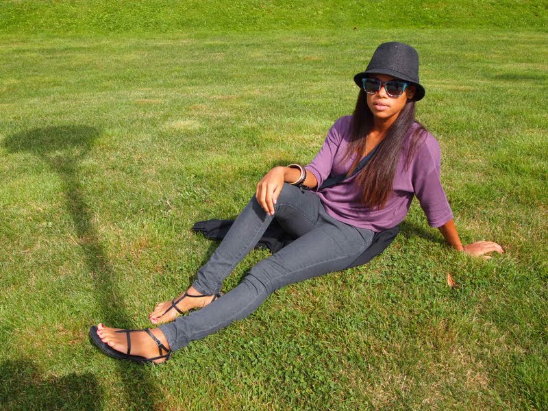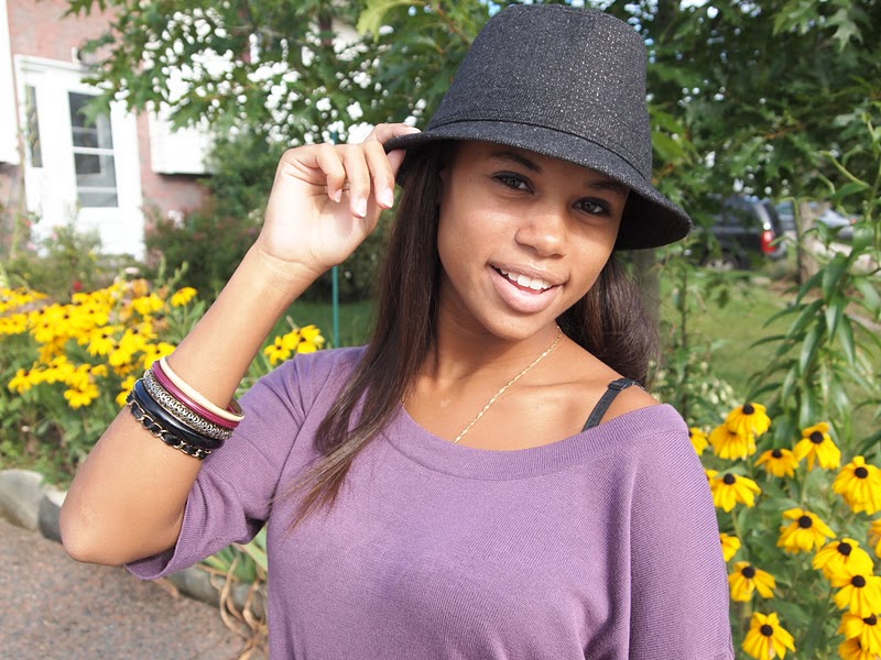 (H&M top; Forever 21 jeans, sunnies, & black and gold bangles; Nine West sandals; Vintage purse, watch, maroon and off white bangle; Charlotte Russe Fedora)