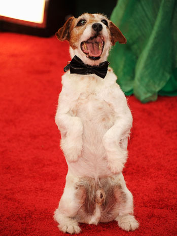It was hard to find any good images of the men at the Globes, it’s a shame they get overlooked. My top three men of the night were Adam Levine, Brad Pitt (minus the beard) and the handsome Leo DiCaprio. But the cutest in my opinion was Uggie, the dog star from The Artist. I think he stole the show, especially when the film won Best Musical or Comedy. One of the many films on my must see list from the night.