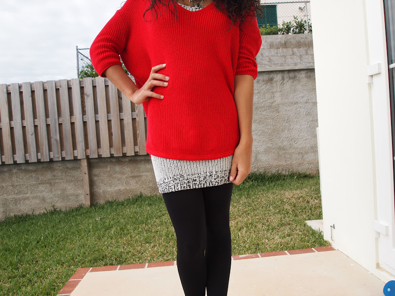 That over sized sweater is great with the dress and tights. And your shoes is amazing! Love your outfit.