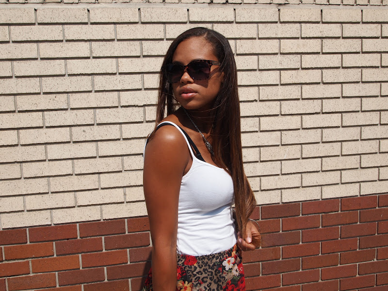 (Forever 21 top, skirt, necklace, sunnies & bracelets; Nine West purse; Madden Girl heels)