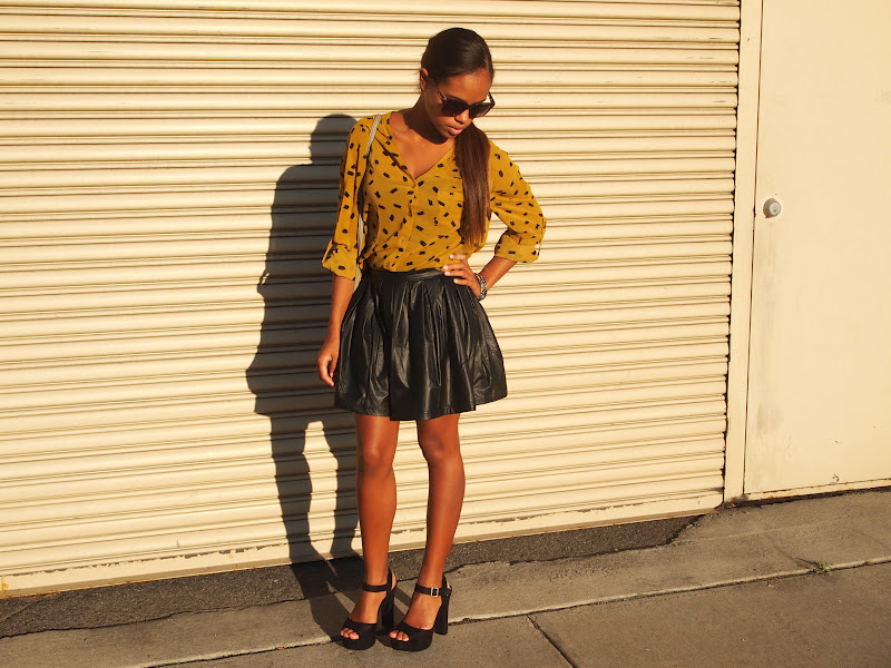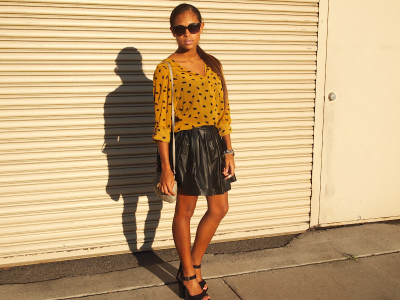 (Forever 21 top, skirt, sunnies & bangles; Steve Madden purse; Madden Girl heels)